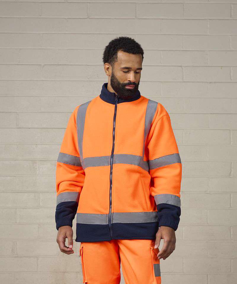 The high visibility full-zip fleece is perfect for when you need to be seen whilst remaining warm. In high visibility yellow and orange with navy contrast in the most dirt prone areas making this both a stylish and practical garment that provides level 3 protection.