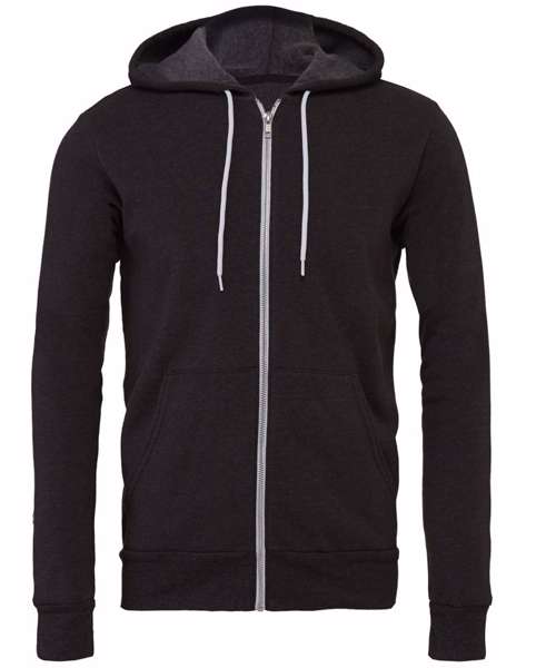 Full zip closure with white taping. Ribbed cuffs and waistband. Kangaroo pockets. Relaxed, unisex fit.