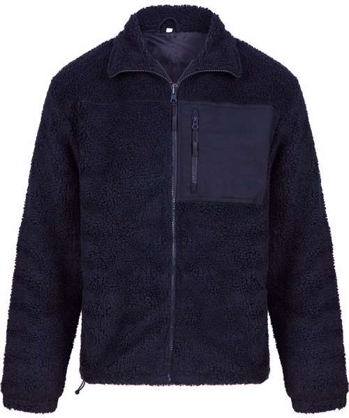 Zip-through fleece jacket, regular fit. Lined with embroidery access. Contrast funnel collar, fleece inner. Flatlock-stitched contrast panels – 100% cotton twill. Front chest pocket with zip. Welt side pockets with popper fastening. Elasticated cuffs. Curved hem with elasticated cord. Tag-free for easy rebranding.