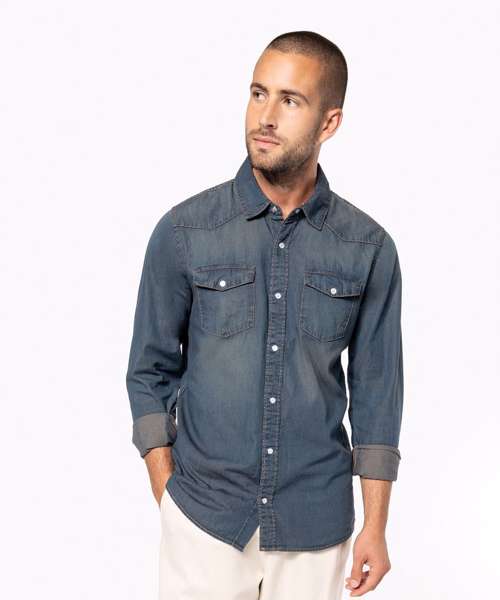 100% cotton. Enzyme-washed shirt. Fitted style. Decorative stud buttons. 2 studded chest pockets with flap. Front and back yokes. Studded cuffs. This product has been specially treated and appears intentionally aged. This manufacturing process result in colour variations between products and makes each piece unique. BSCI certified. Oeko-Tex certified.