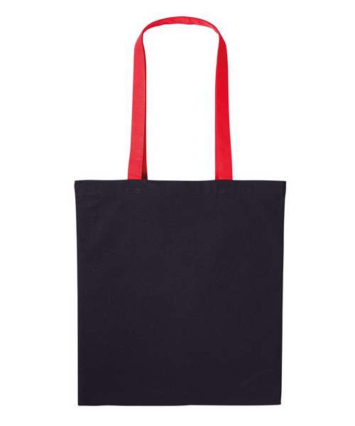 Two-tone cotton shopper. Long handles, 70 x 2.5cm. Inside hemmed sewing. Cross-stitches at handle. Perfect print surface.