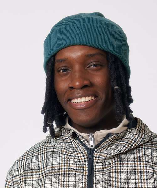 1x1 rib beanie with two layers and foldable brim made of organic cotton and recycled polyester. Unisex fit, in a wide range of colours.